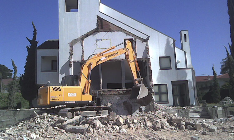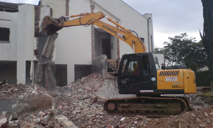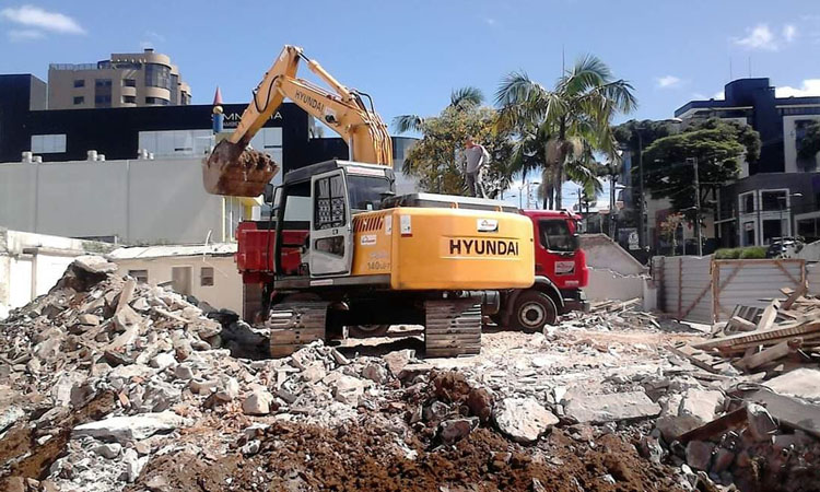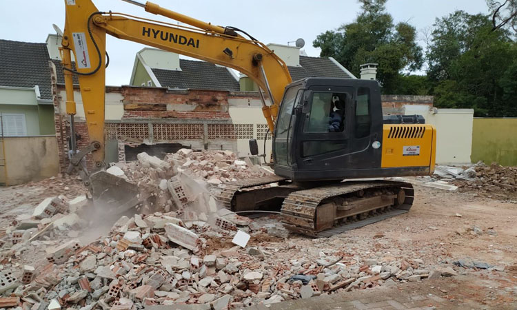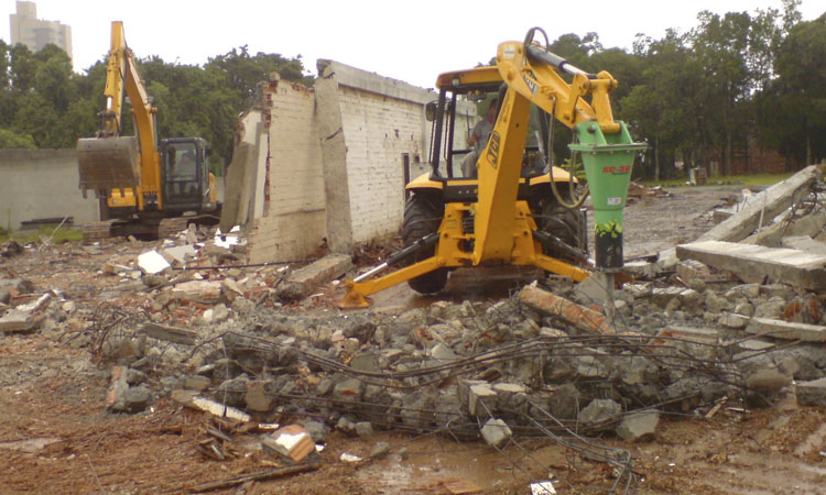 Executamos serviços de demolição de edificações em alvenaria ou concreto como casas, residências, barracões, galpões, rochas alicerces, com a utilização de retroescavadeira e escavadeira hidráulica que podem, caso necessário, serem equipadas com martelo rompedor hidráulico.