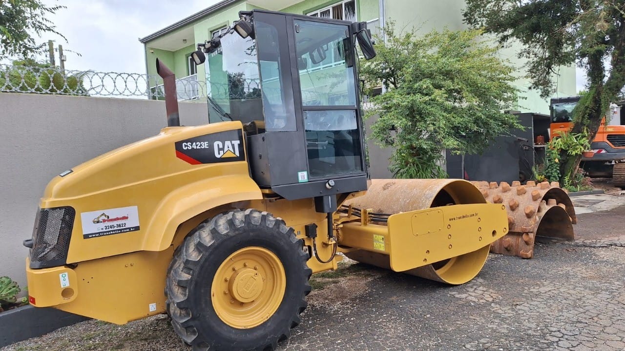 O rolo compactador de solos CAT CS-423E é um equipamento versátil compacto, também conhecido como rolo corrugado ou pé de carneiro, capaz de compactar solos e materiais granulares. Quando equipado com a capa corrugada pode compactar solos coesivos (argilosos).